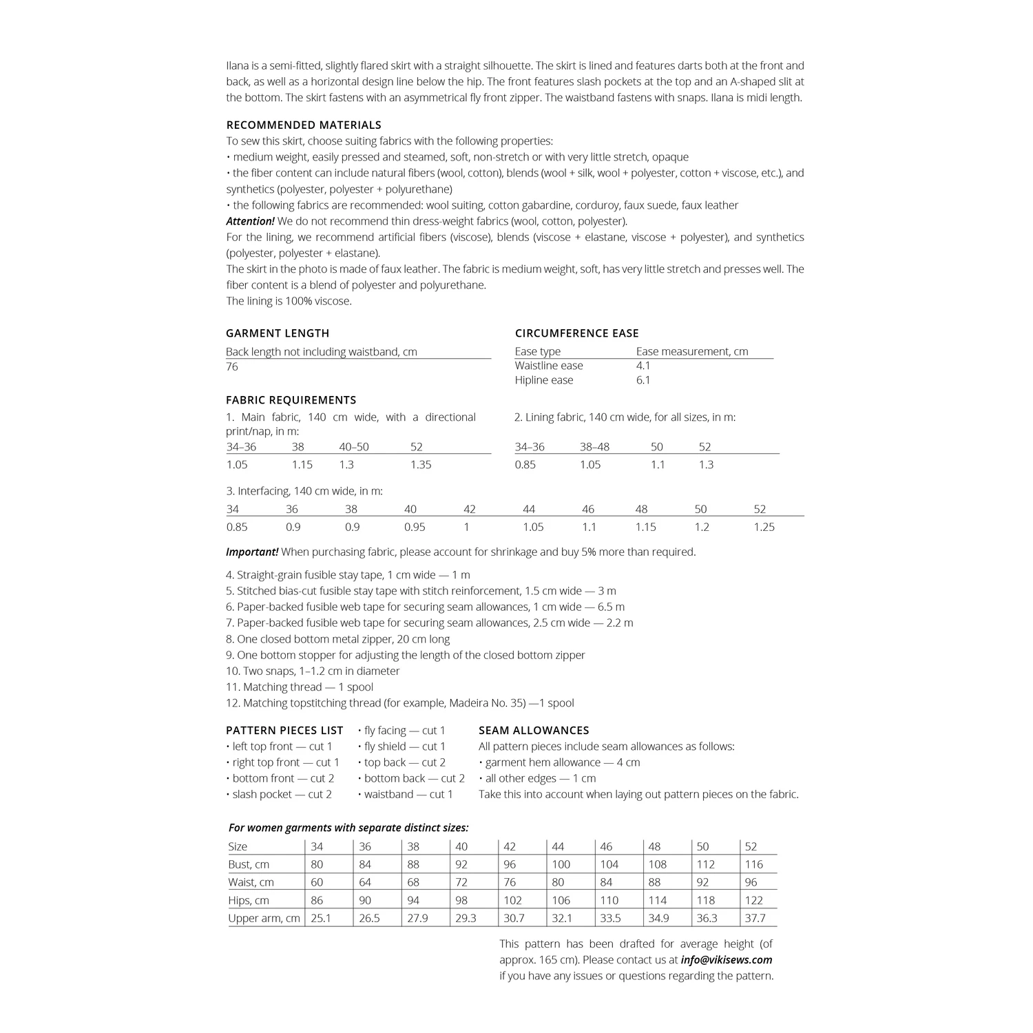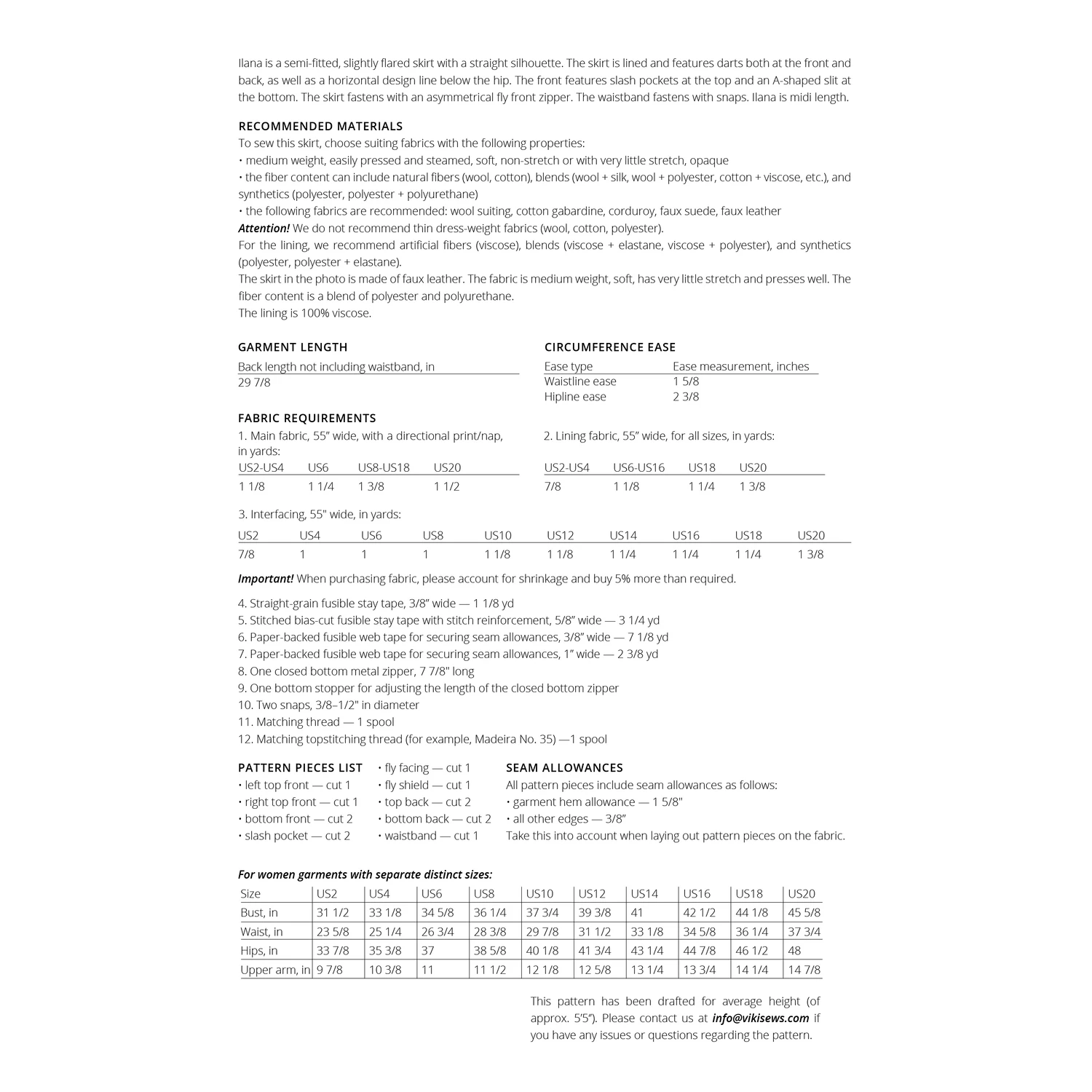 Ilana is a partially fitted, subtly flared skirt with a straight silhouette, fully lined, showcasing front and back darts, and a horizontal design line below the hip. The front boasts top slash pockets and a distinctive A-shaped slit at the bottom. It fastens with an off-centre fly front zipper, while the waistband secures with snaps. Ilana gracefully falls to a midi length.
