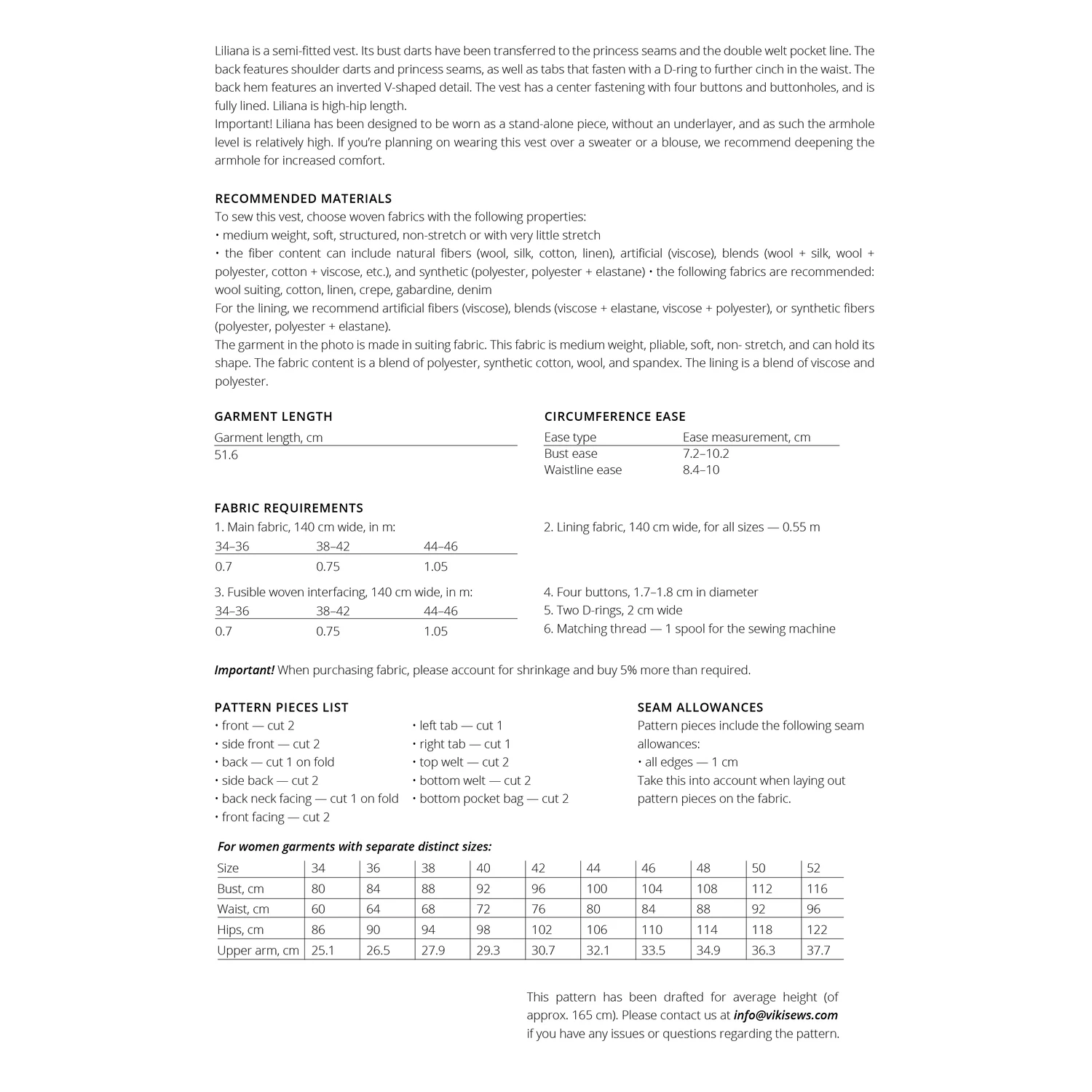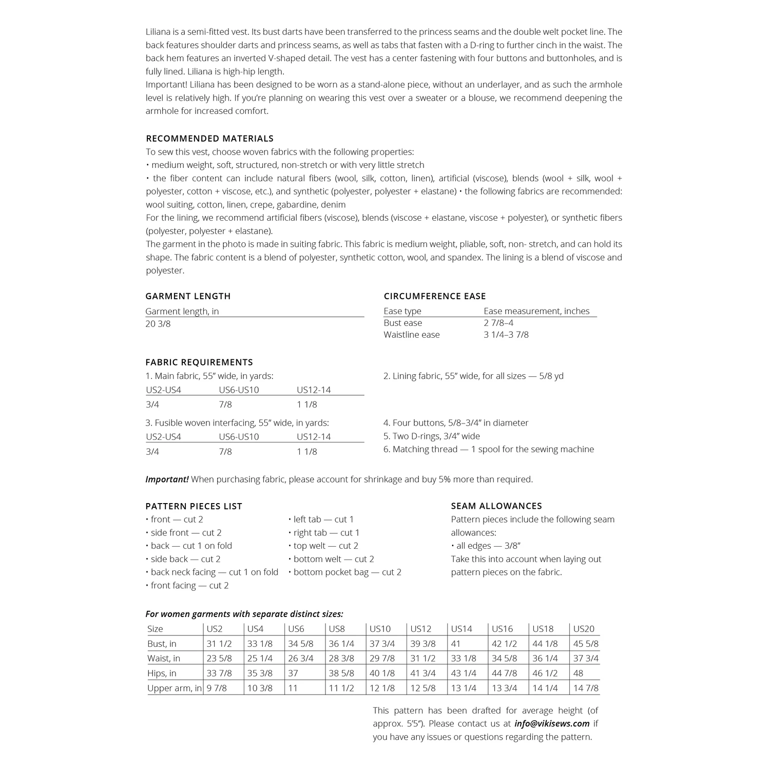 Please note that Liliana is designed to be worn as a stand-alone piece with a relatively high armhole level. If layering over a sweater or blouse, consider deepening the armhole for added comfort.