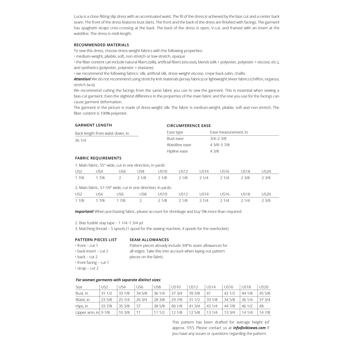 ATTENTION: Stretchy knit materials (jersey fabrics) or lightweight sheer fabrics (chiffon, organza, stretch lace) are NOT recommended.