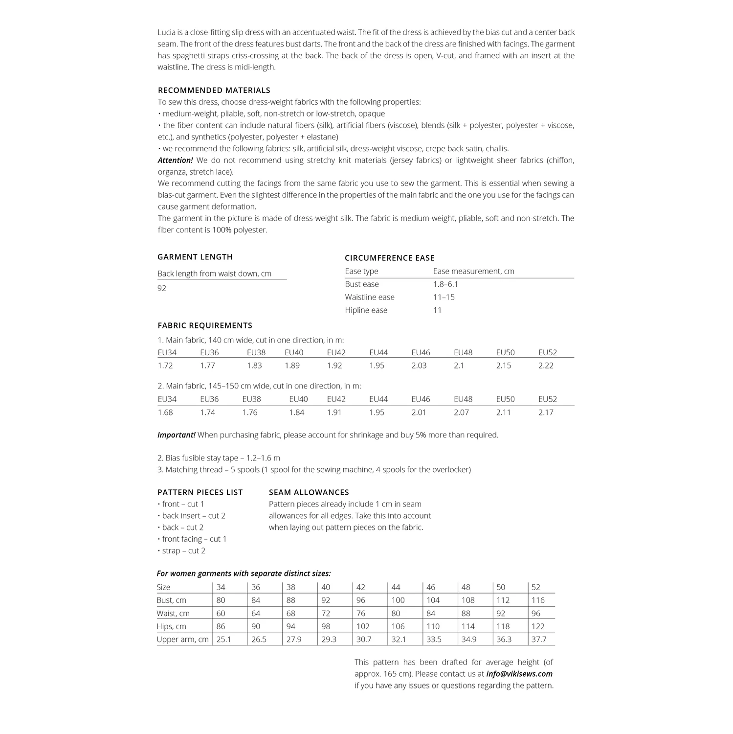 Lucia is a snug slip dress, highlighting the waist through a bias cut and central back seam. It includes front bust darts and facings on both sides. With criss-crossing spaghetti straps at the open, V-cut back, accented by a waistline insert, Lucia is designed for a midi-length look.