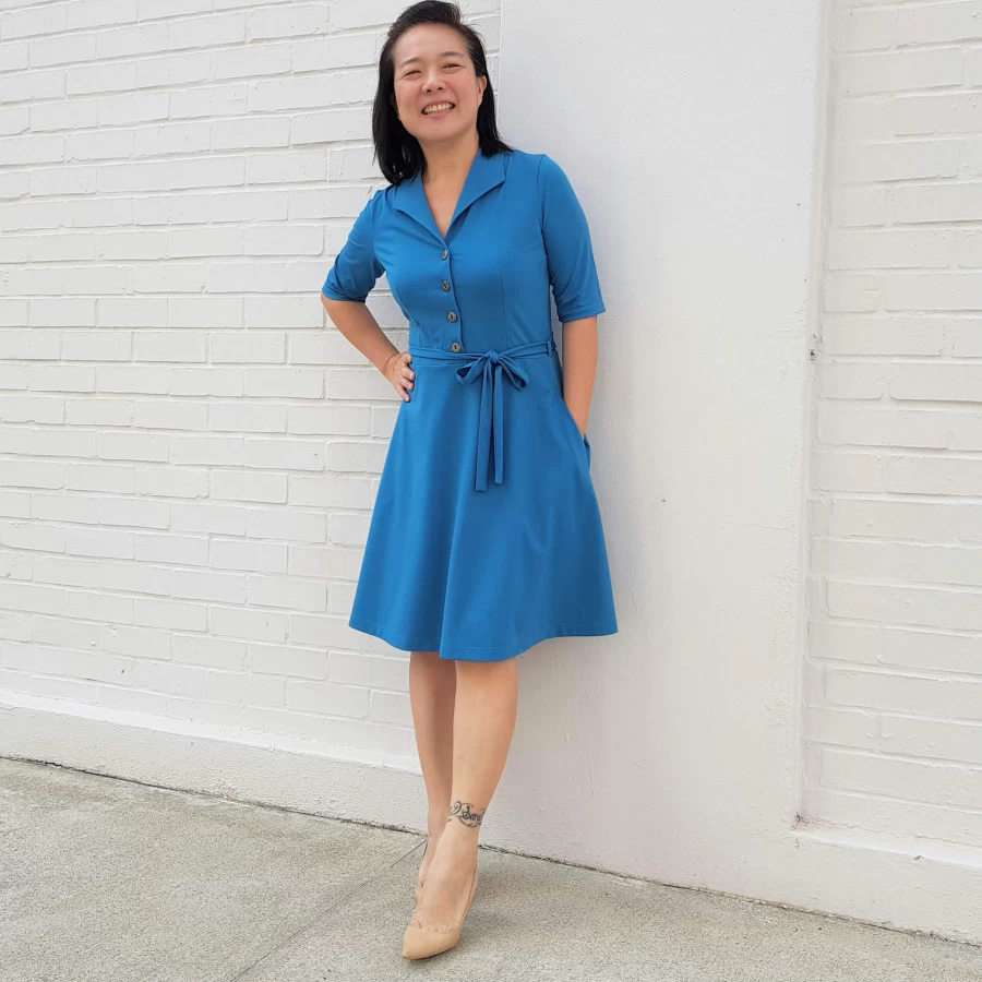 The pattern also includes two collar options, allowing you to choose between a pointed or round shawl collar, adding a personalised touch to your dress. With the inclusion of in-seam pockets and a belt, both style and functionality are seamlessly combined. The fitted sleeve offers various length options, from classic to a cute cap sleeve perfect for warmer weather.