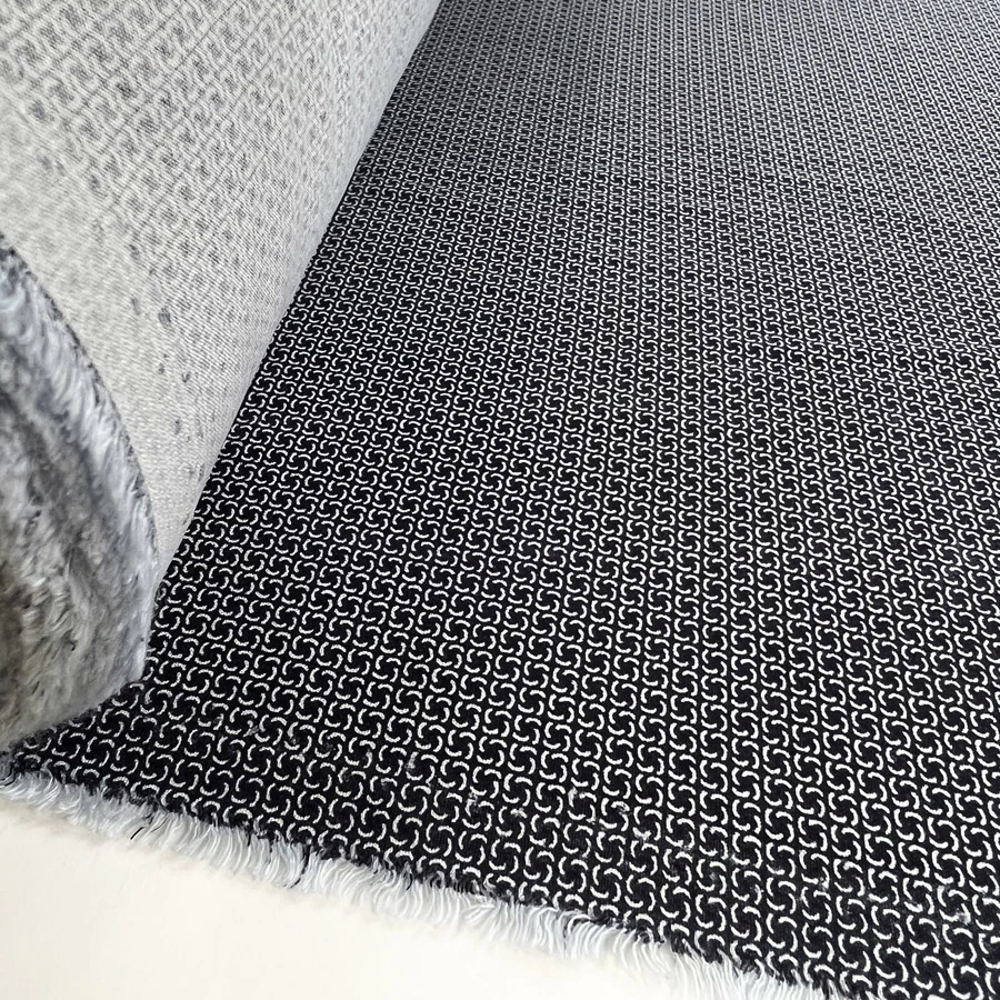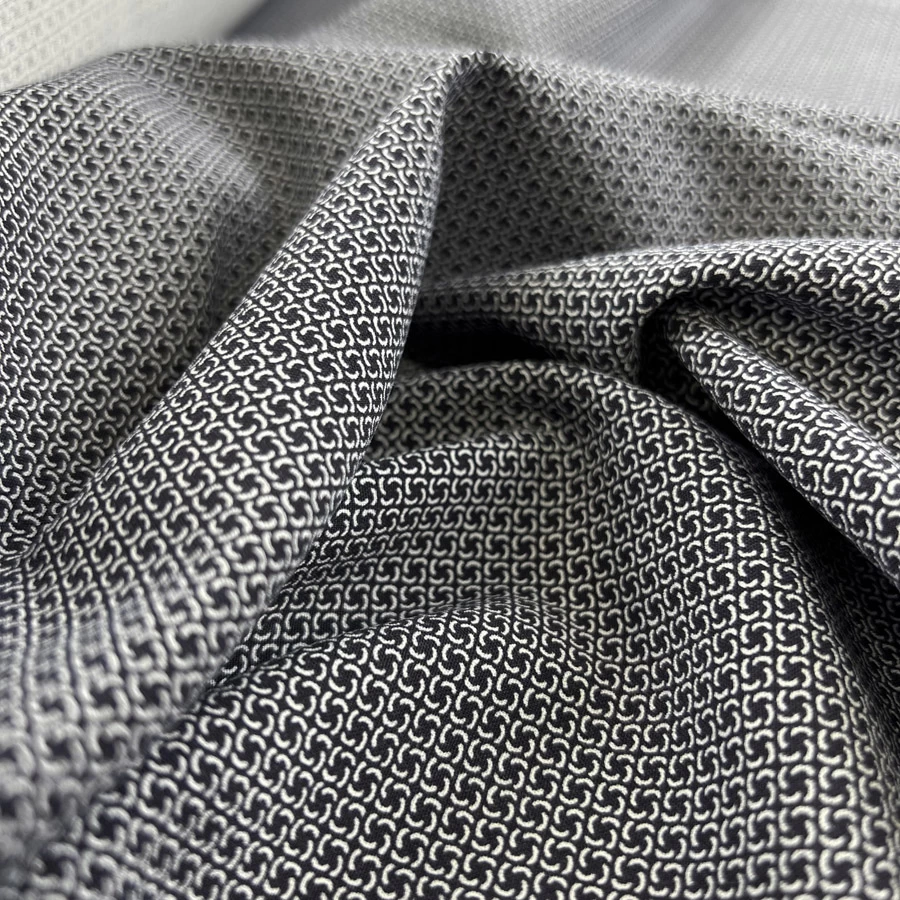 Featuring an intersting small scale pattern that reminds us a little of an Irish knot in navy and white.